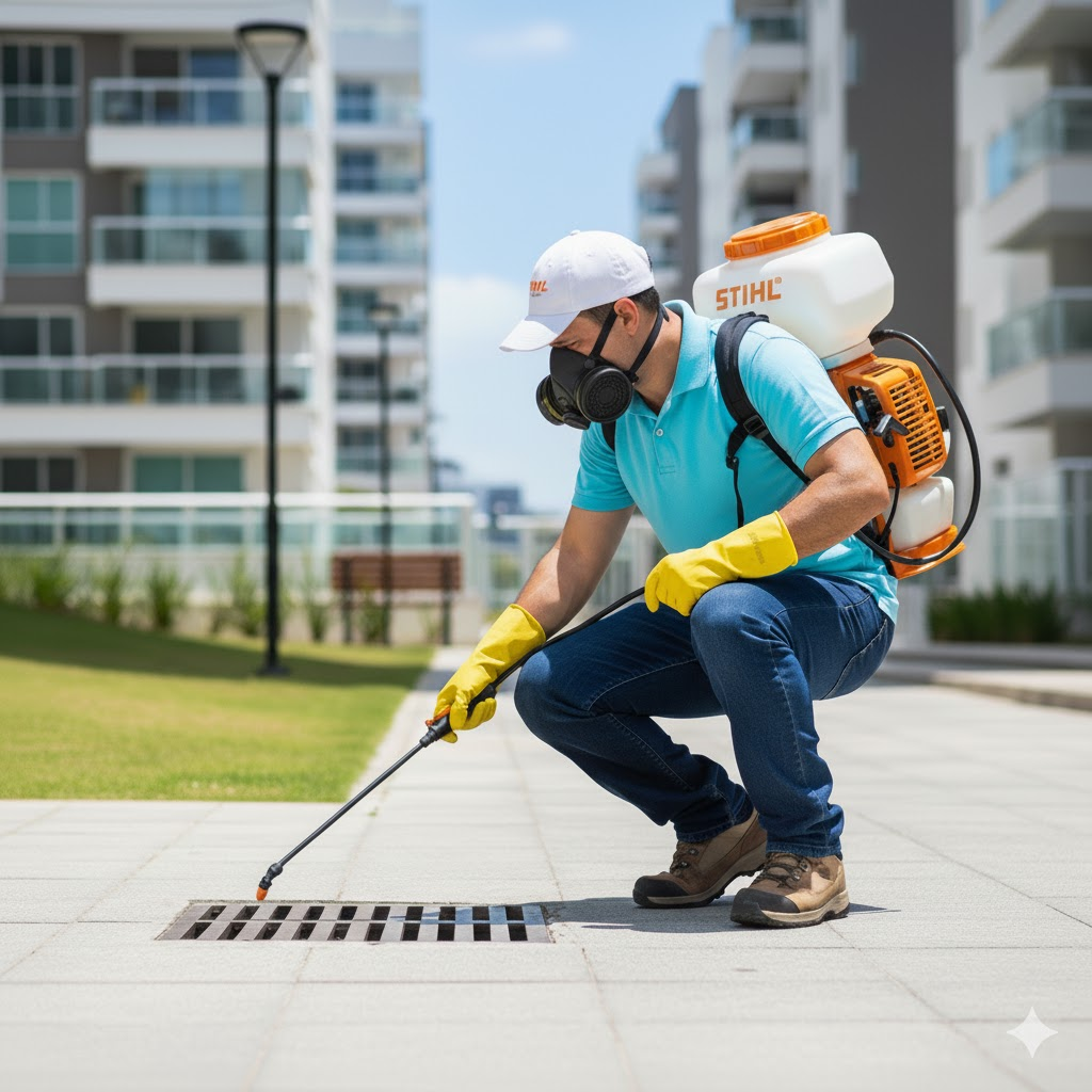 Aplicação de inseticida com ação prolongada que cria uma barreira de proteção duradoura. O produto permanece ativo por semanas, eliminando baratas que entram em contato com as superfícies tratadas.